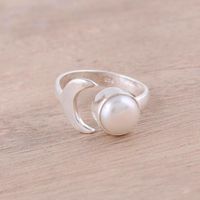 Cultured Pearl Crescent Wrap Ring from India 'Gleaming Crescent' Item ID: 2669944221