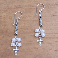 Cultured Pearl Cross Dangle Earrings from Bali 'Heavenly Design' Item ID: 2671735897