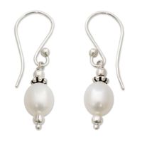 These earrings are absolutely gorgeous - creamy pearls coupled with ornate silver work. The weight and length combine to create a dance hanging from your ears!