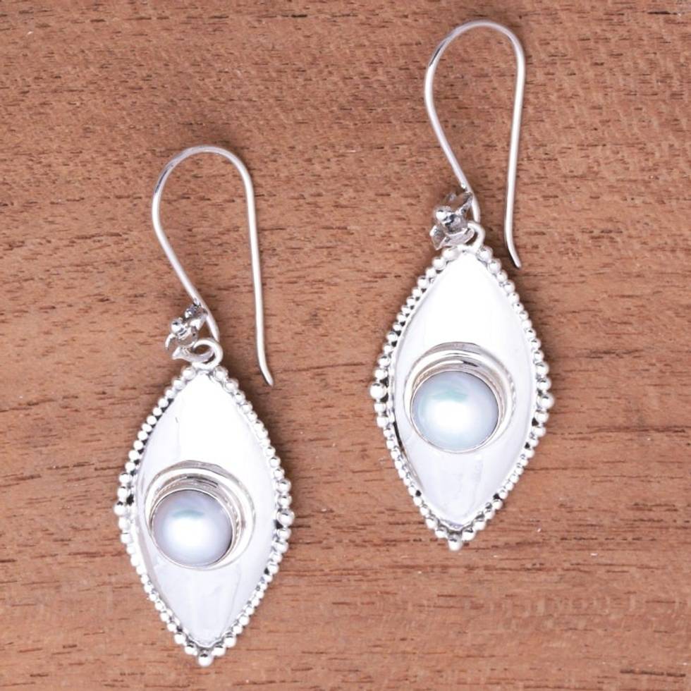 Cultured Pearl Dangle Earrings Crafted in Bali 'Moonlight Shields' Item ID: 2669921473