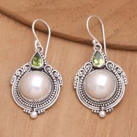 Cultured Pearl Dangle Earrings with Faceted Peridot Stones 'Underwater Forest' Item ID: 2671568472