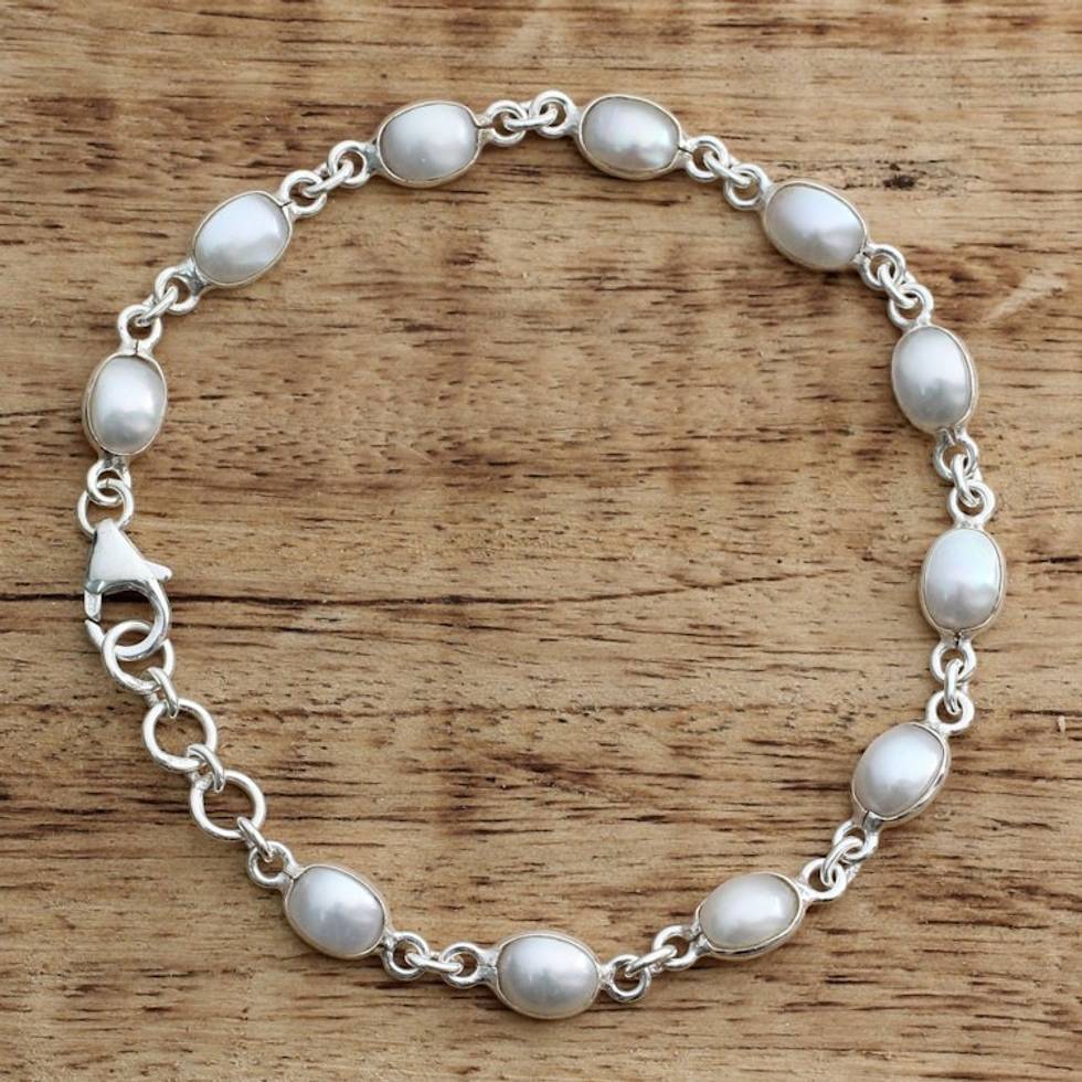 Cultured Pearl Handcrafted Tennis Bracelet Sterling Silver 'Romantic Aura' Item ID: 2671619288