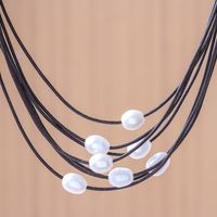 Cultured Pearl Pendant Necklace on Brown Cord from Thailand 'Luminous Pebbles in Brown' Item ID: 2671798651