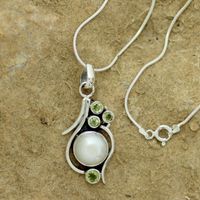 Cultured Pearl Peridot and Sterling Silver Necklace 'Sweet Dreams' Item ID: 2669924412