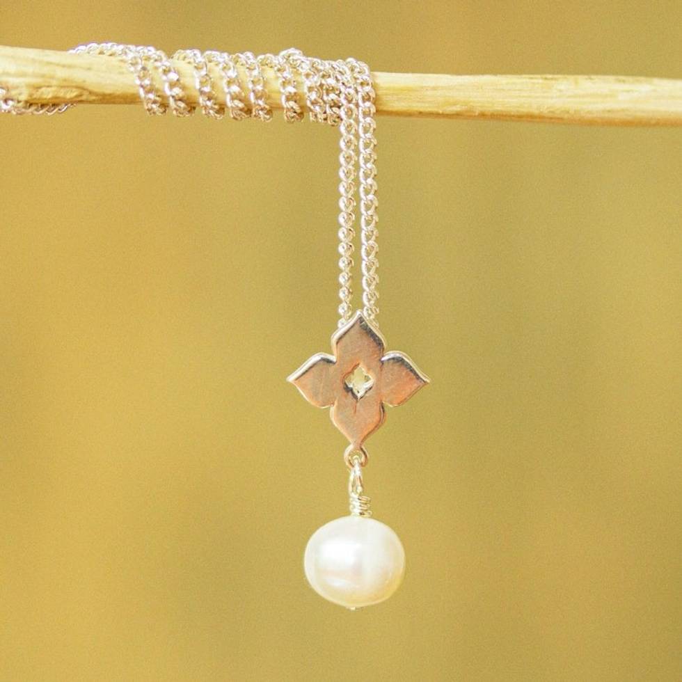 Cultured Pearl Pointed Flower Pendant Necklace from Mexico 'Moroccan Flower' Item ID: 2671808048
