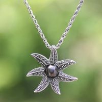 Cultured Pearl Starfish Necklace in Black from Bali 'Galang Starfish in Black' Item ID: 2671476835