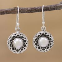 Cultured Pearl Sterling Silver Dangle Earrings from India 'Delhi Moonlight' Item ID: 2671791233