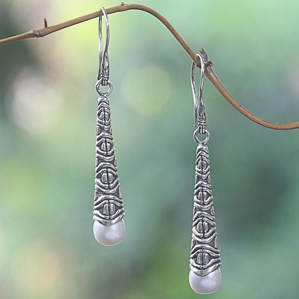 Cultured Pearl Sterling Silver Dangle Earrings Indonesia 'Borobudur Trumpet' Item ID: 2671701798