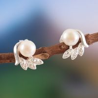 Cultured Pearl Sterling Silver Wing-Shaped Button Earrings 'Embrace Freedom' Item ID: 2671267768