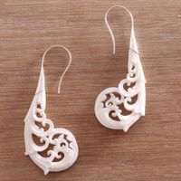 Curl Motif Bone Drop Earrings Crafted in Bali 'Tampaksiring Forest' Item ID: 2671736749