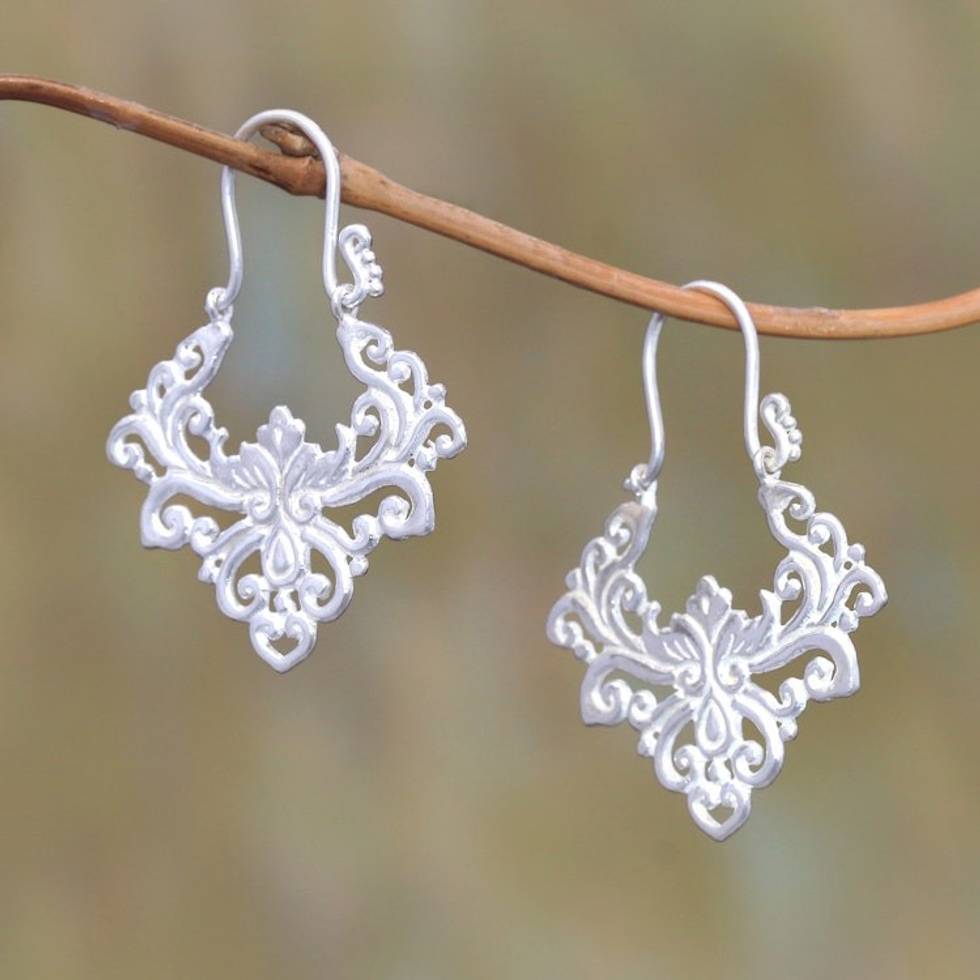 Curl Motif Sterling Silver Plated Drop Earrings from Bali 'Alam Pride' Item ID: 2671735432