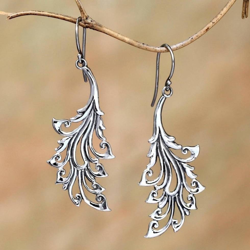 Curl Pattern Sterling Silver Dangle Earrings from Bali 'Bladed Curls' Item ID: 2671736810