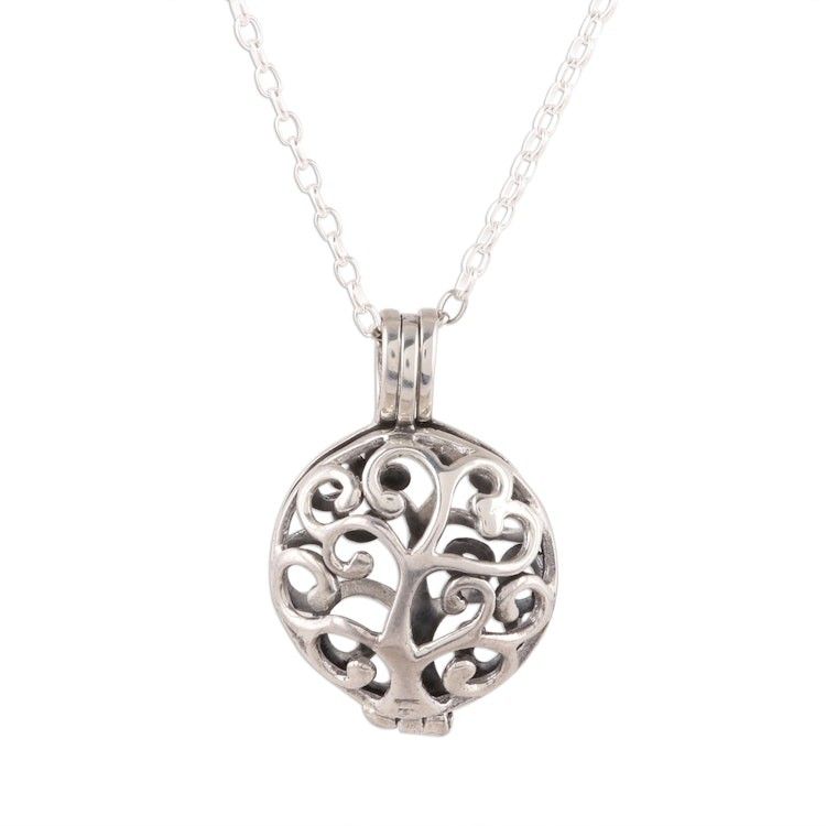 Curl Pattern Sterling Silver Locket Necklace from India 'Happy Curl' Item ID: 2671789515
