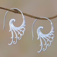 Curling Motif Sterling Silver Half-Hoop Earrings from Bali 'Angelic Wings' Item ID: 2671736479