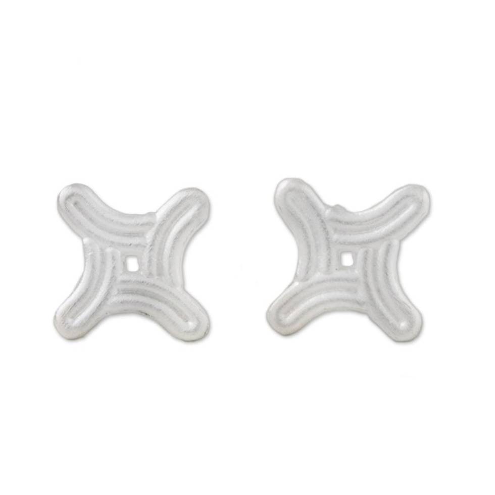 Curved Four-Sided Star Sterling Silver Stud Earrings 'Winking Star' Item ID: 2671801282
