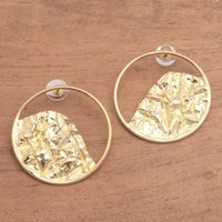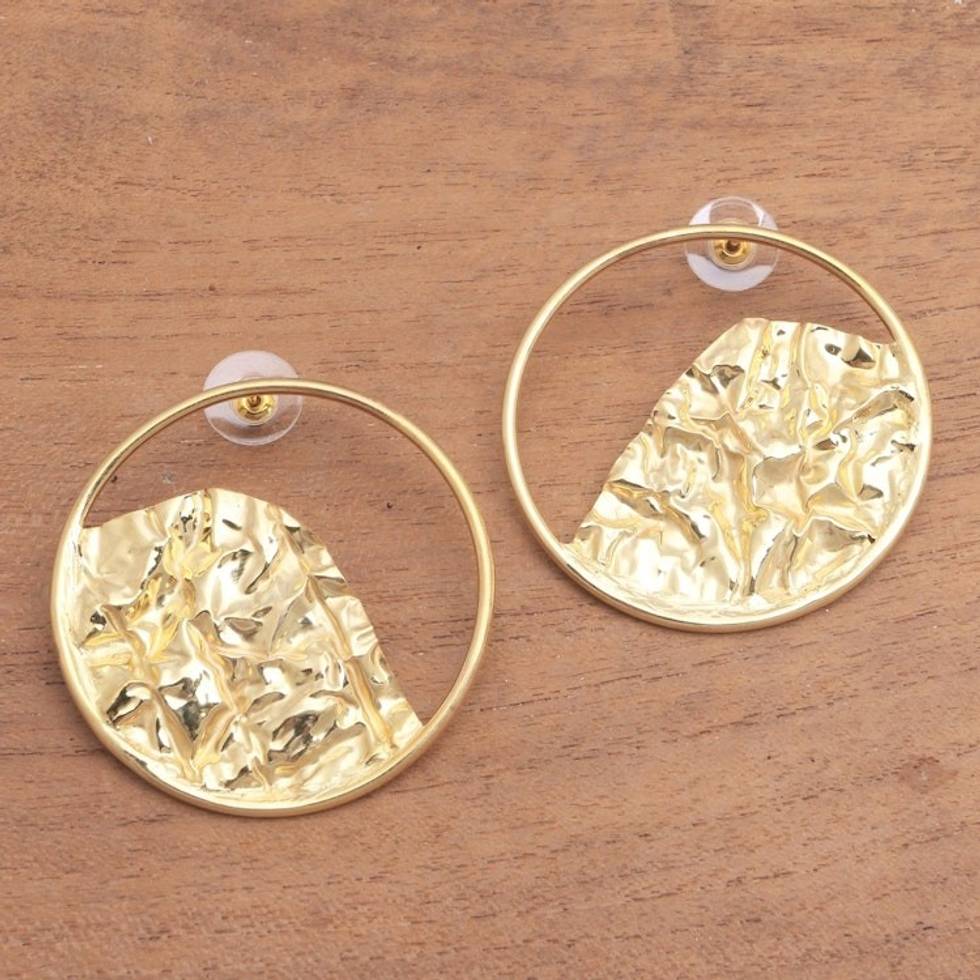 Curvy 18k Gold-Plated Brass Drop Earrings from Bali 'Curved Waves' Item ID: 2671744821
