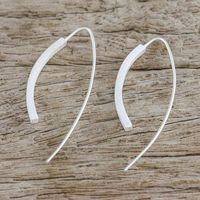 Curvy Sterling Silver Drop Earrings from Thailand 'Curved Pillars' Item ID: 2669926302