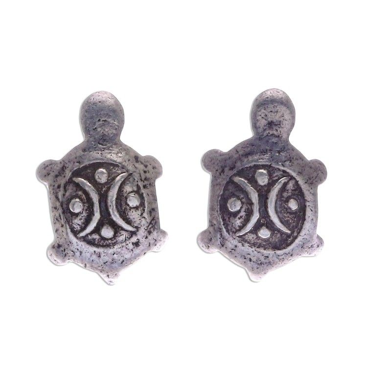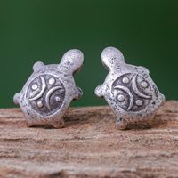 Cute 950 Silver Turtle Stud Earrings 'Thai Turtles' Item ID: 2671800399
