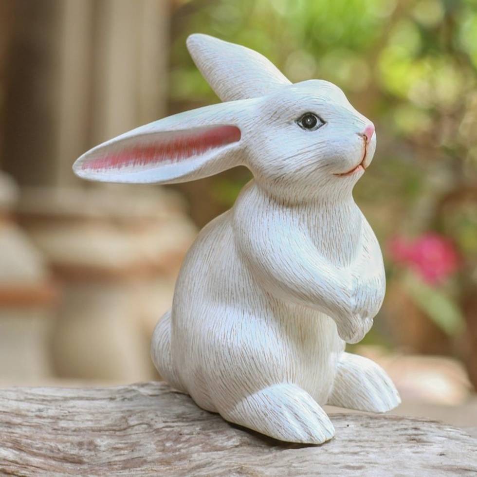 Cute Hand Carved White Rabbit Sculpture 'Adorable Rabbit in White' Item ID: 2669891569