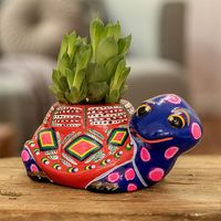 Cute Miniature Turtle Ceramic Flower Pot from Guatemala 'Herbaceous Tortoise' Item ID: 2671772091