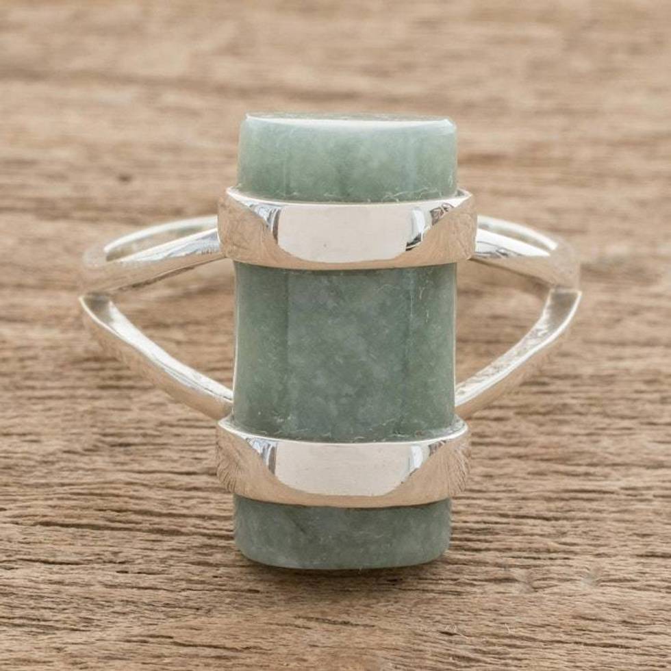 Cylindrical Apple Green Jade Cocktail Ring from Guatemala 'Sweet Maya in Apple Green' Item ID: 2676659650
