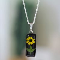 Cylindrical Black Natural Sunflower Resin Pendant Necklace 'Sun Gift at Night' Item ID: 2669932041