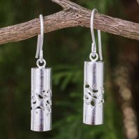 Cylindrical Sterling Silver Earrings 'Thai Art' Item ID: 2676651474