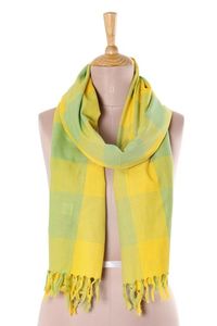 Daffodil and Turquoise Cotton Wrap Scarf from India 'Daffodil Glow' Item ID: 2671792720