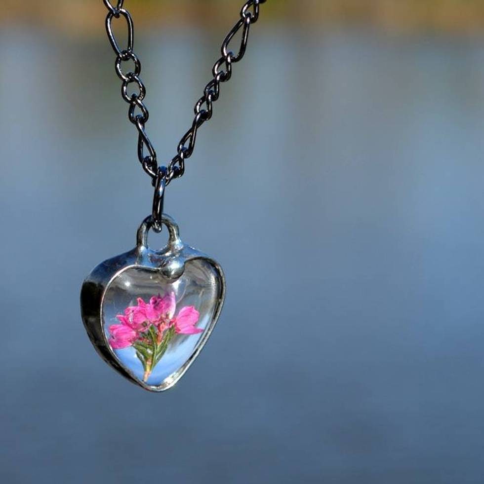 Dainty Pressed Flower Jewelry, Scottish Heather Heart Necklace for Women, Natural Flower Pendant Item ID: 2675076265