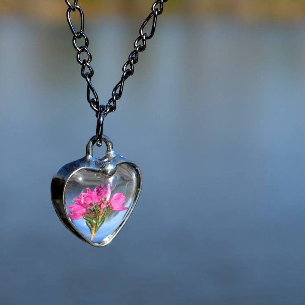 Dainty Pressed Flower Jewelry, Scottish Heather Heart Necklace, Natural Flower Pendant Item ID: 2675076265