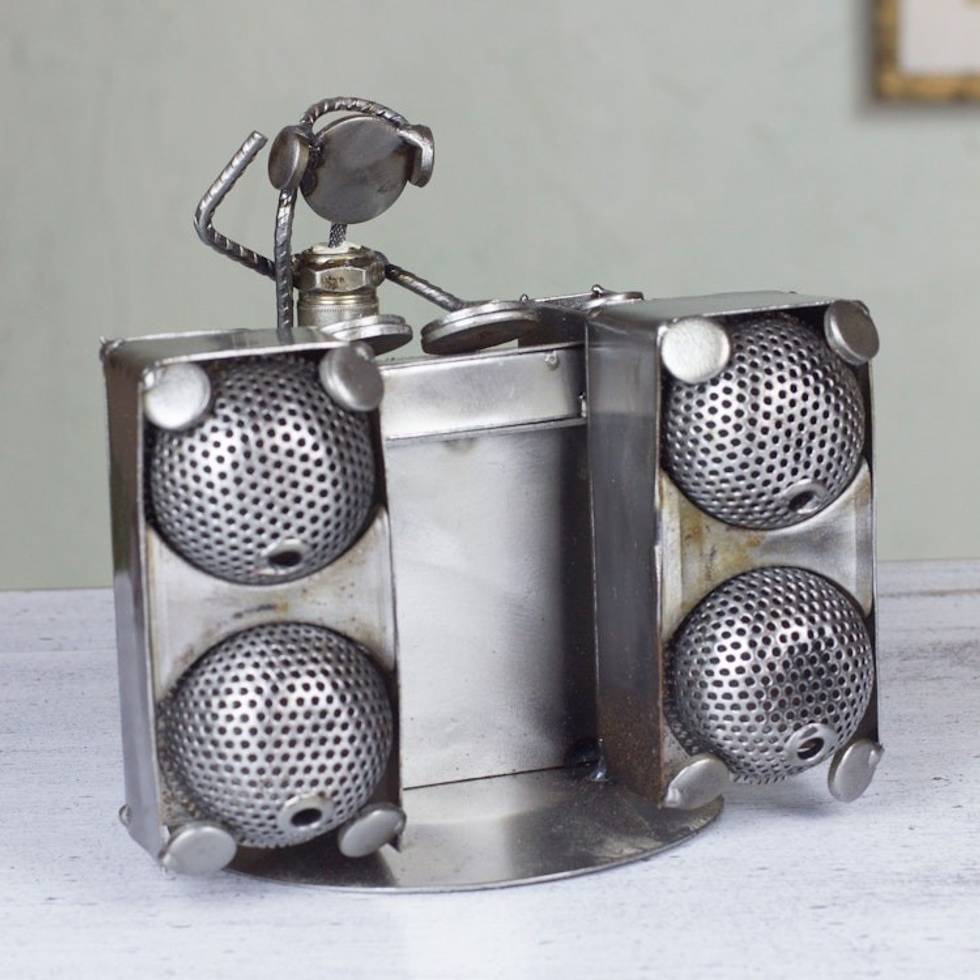Dance and Music Metal Recycled Auto Parts Sculpture 'Rustic DJ' Item ID: 2669932201