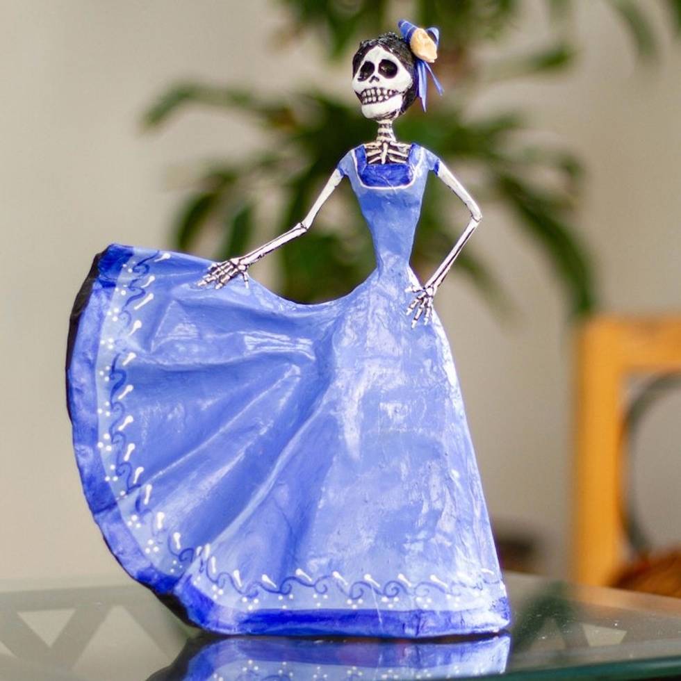 Dancing Catrina Handmade Papier Mache Statuette 'Dancing Catrina in Blue' Item ID: 2669897927