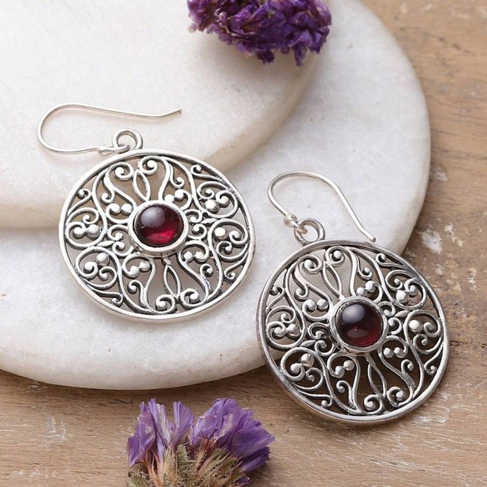 Dangle Earrings Hand Crafted in Sterling with Garnets 'Shalimar Gardens' Item ID: 2671791182