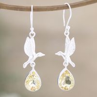 Dangle Earrings with Citrine and Cubic Zirconia Stones 'Precious Flight' Item ID: 2671788990