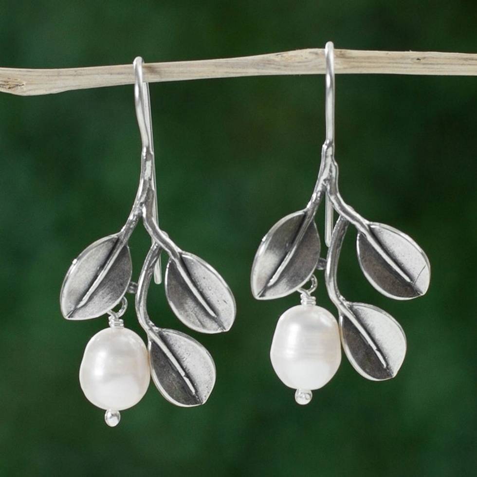 Dangle Earrings with Cultured Pearls and 925 Silver Leaves 'Iridescent Pears' Item ID: 2671639076