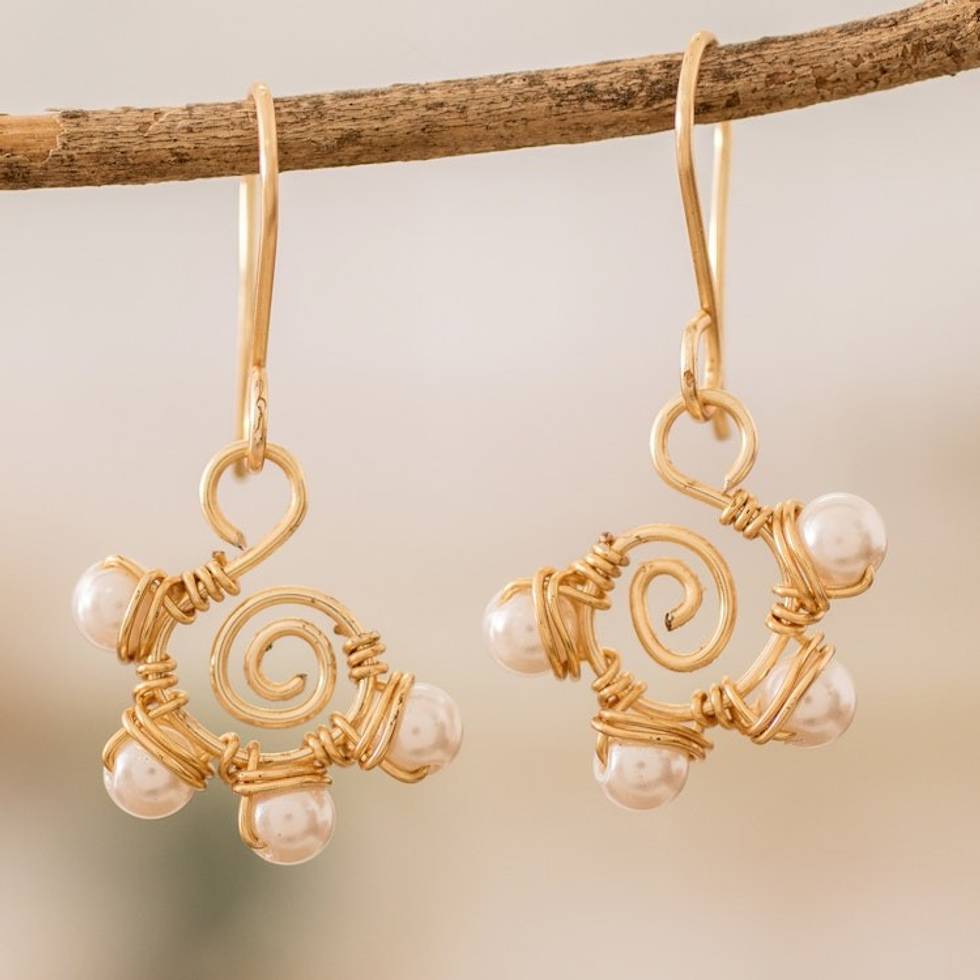 Dangle Earrings with Cultured Pearls Twisted Wire Accents 'Cool Wind' Item ID: 2671769239