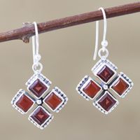 Dangle Earrings with Garnet and Carnelian 'Quadrangle' Item ID: 2669924793