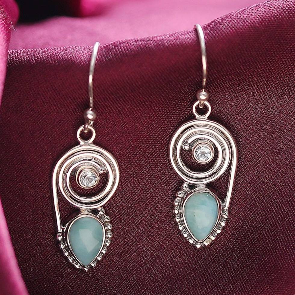 Dangle Earrings with Larimar and Blue Topaz 'Wondrous Coil' Item ID: 2671790016