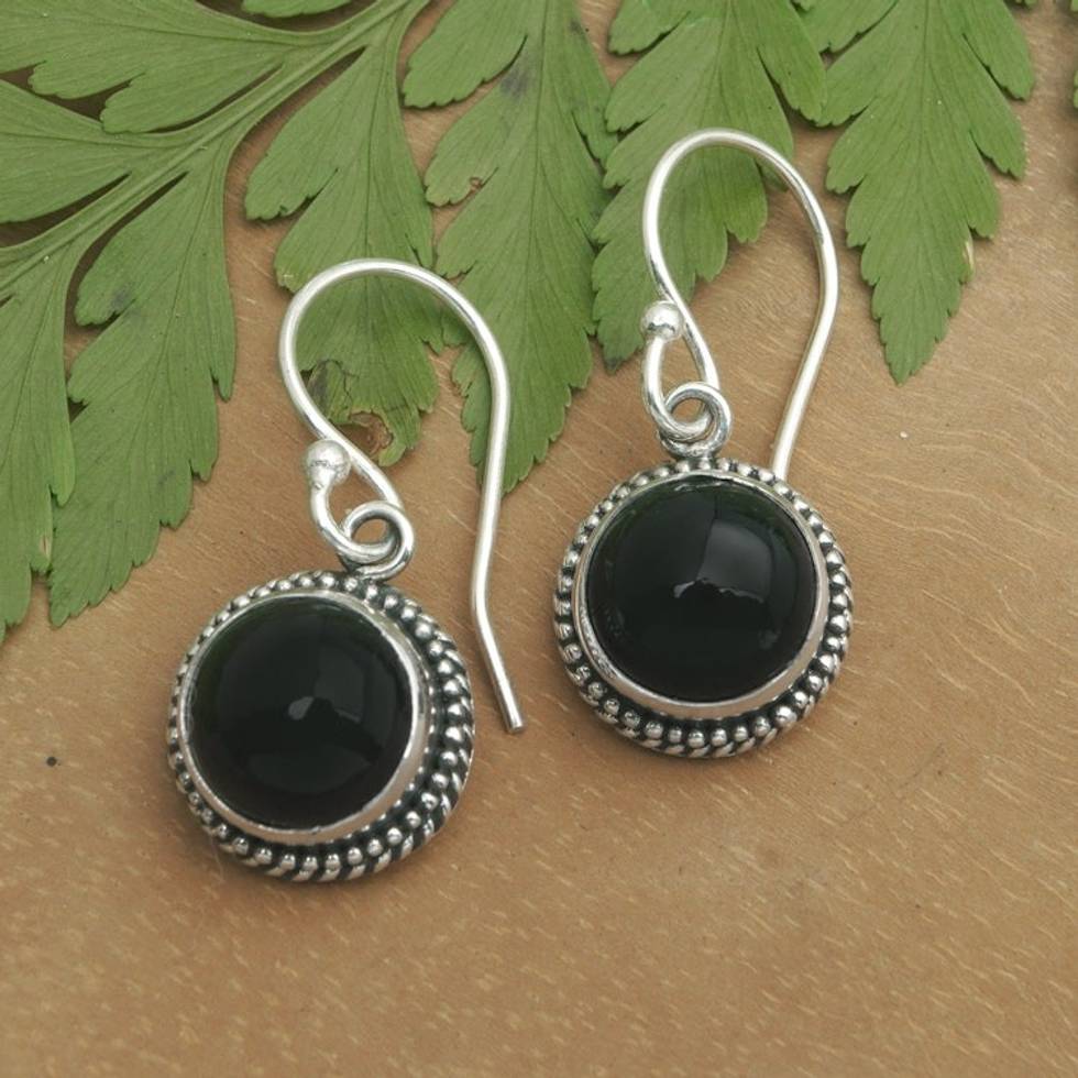 Dangle Earrings with Onyx Cabochons and Braided Motifs 'Guardian Gaze' Item ID: 2669922973