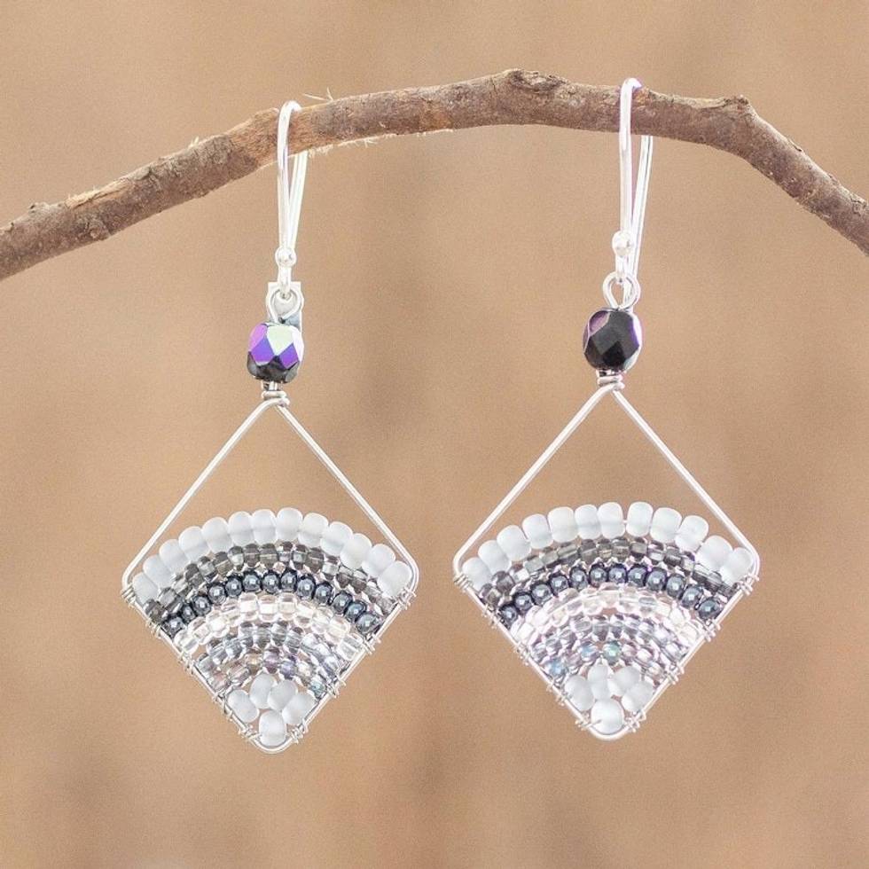 Dangle Earrings With Rows of Grey Beads From Guatemala 'Grey Rainbow' Item ID: 2671771647