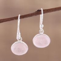 Dangle Earrings with Sterling Silver and Rose Quartz 'Pink Aurora' Item ID: 2669956101