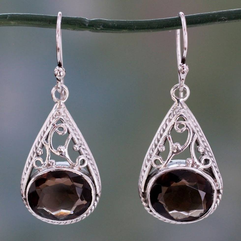 Dangle Style Earrings with Smoky Quartz and 925 Silver 'Misty Romance' Item ID: 2669924841