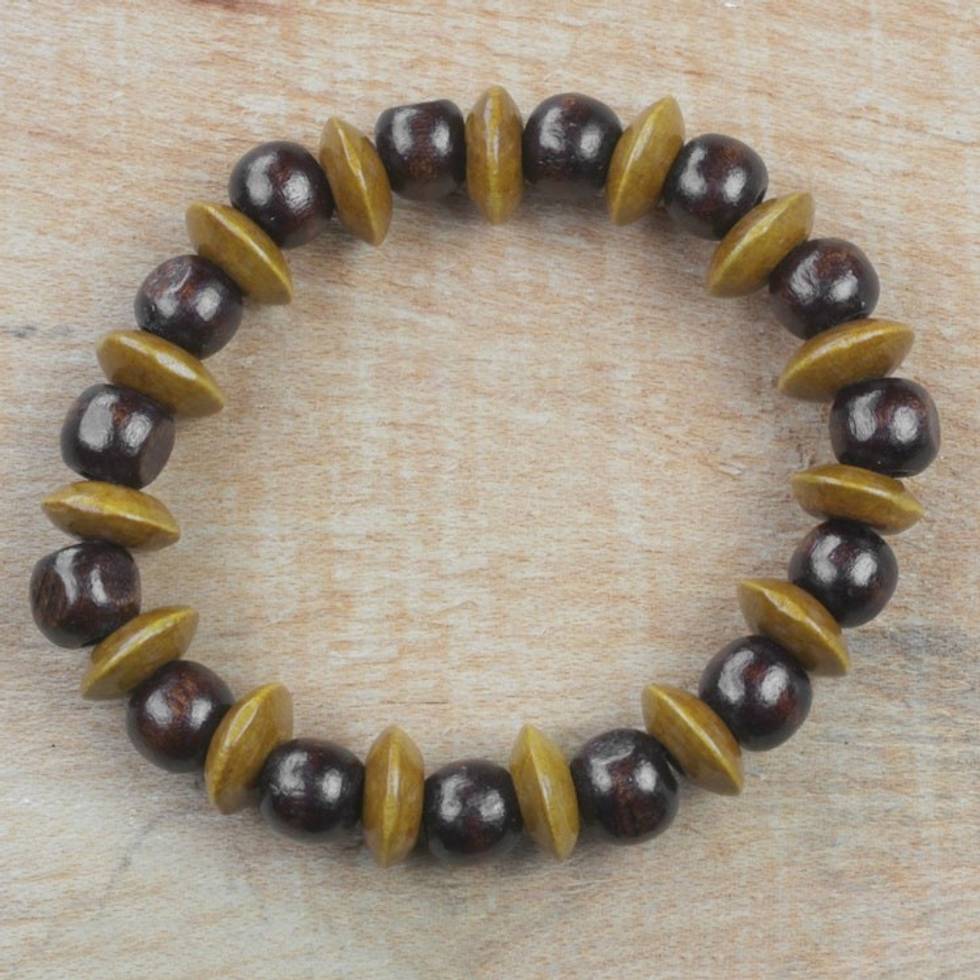 Dark Brown Wood Beaded Stretch Bracelet from Ghana 'Adukrom Beauty' Item ID: 2671803923
