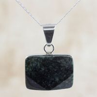 Dark Green Jade and Sterling Silver Handcrafted Necklace 'Tikal Toucan' Item ID: 2671777504