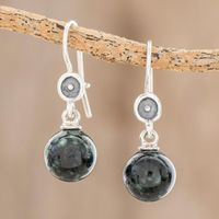 Dark Green Jade Dangle Earrings from Guatemala 'Magic Orbs' Item ID: 2671777147