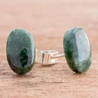 Dark Green Jade Oval Button Earrings from Guatemala 'Oval Simplicity in Dark Green' Item ID: 2669933779