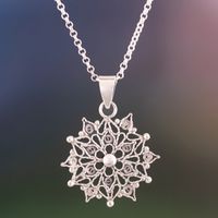 Dark Sterling Silver Filigree Mandala Necklace from Peru 'Dark Mandala' Item ID: 2671691289