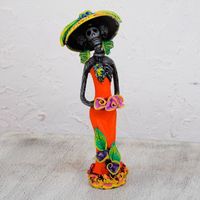 Day of the Dead Catrina Ceramic Figurine in Orange Dress 'Garden Catrina in Tangerine' Item ID: 2669897278