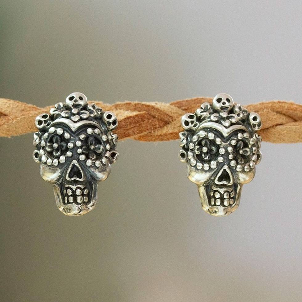 Day of the Dead Folk Art Godmother Button Earrings 'Godmother Skull' Item ID: 2671798650