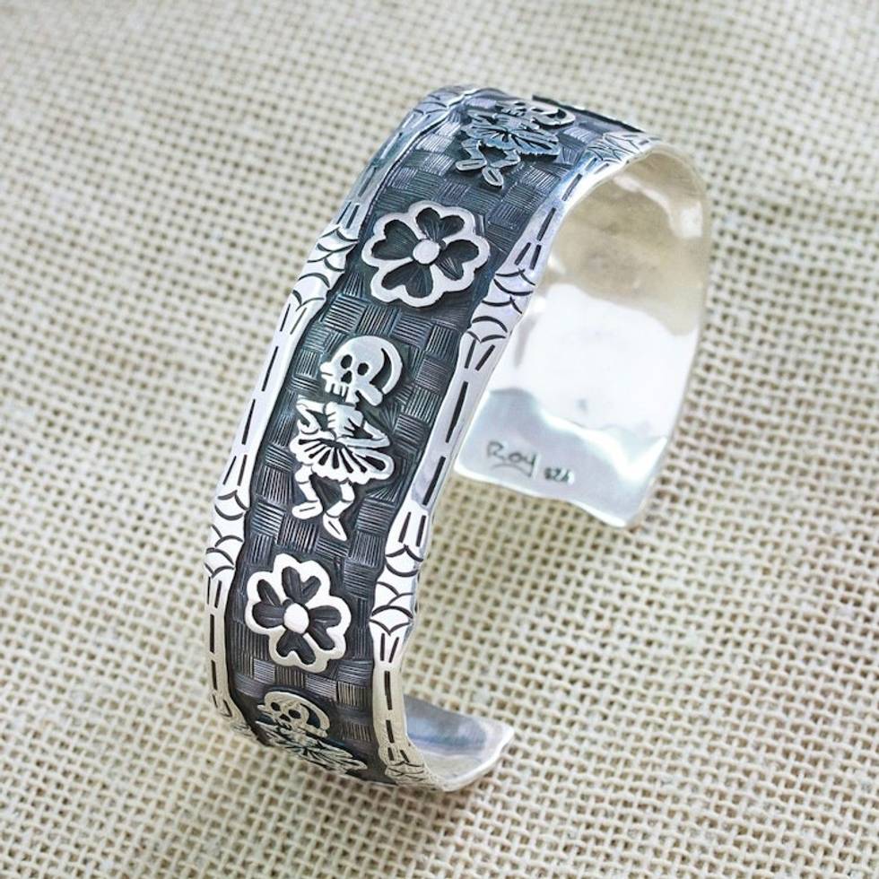Day of the Dead-Themed Sterling Silver Cuff Bracelet 'Underworld Festival' Item ID: 2671807631